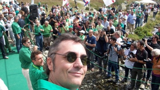 Quello che vedete nella foto fiero, con l'occhiale da sole tondo intellettualoide che stride fortemente con la maglietta verde padano è il segretario della Lega di Vercelli, il siur Giampiero Borzoni.